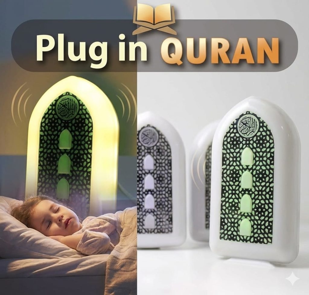 কোনো ঘরে যদি নিয়মিত কোরআন তেলাওয়াত করা হয়, তাহলে সেই ঘরে মহান আল্লাহ বারাকাহ দান করেন। এটি এমন একটি ডিভাইস যেটি ইলেকট্রিক সকেটের সাথে প্লাগ করলেই কুরআন তেলাওয়াত শুরু করবে এবং ড্রিম লাইট হিসেবেও ব্যবহার করা যাবে।